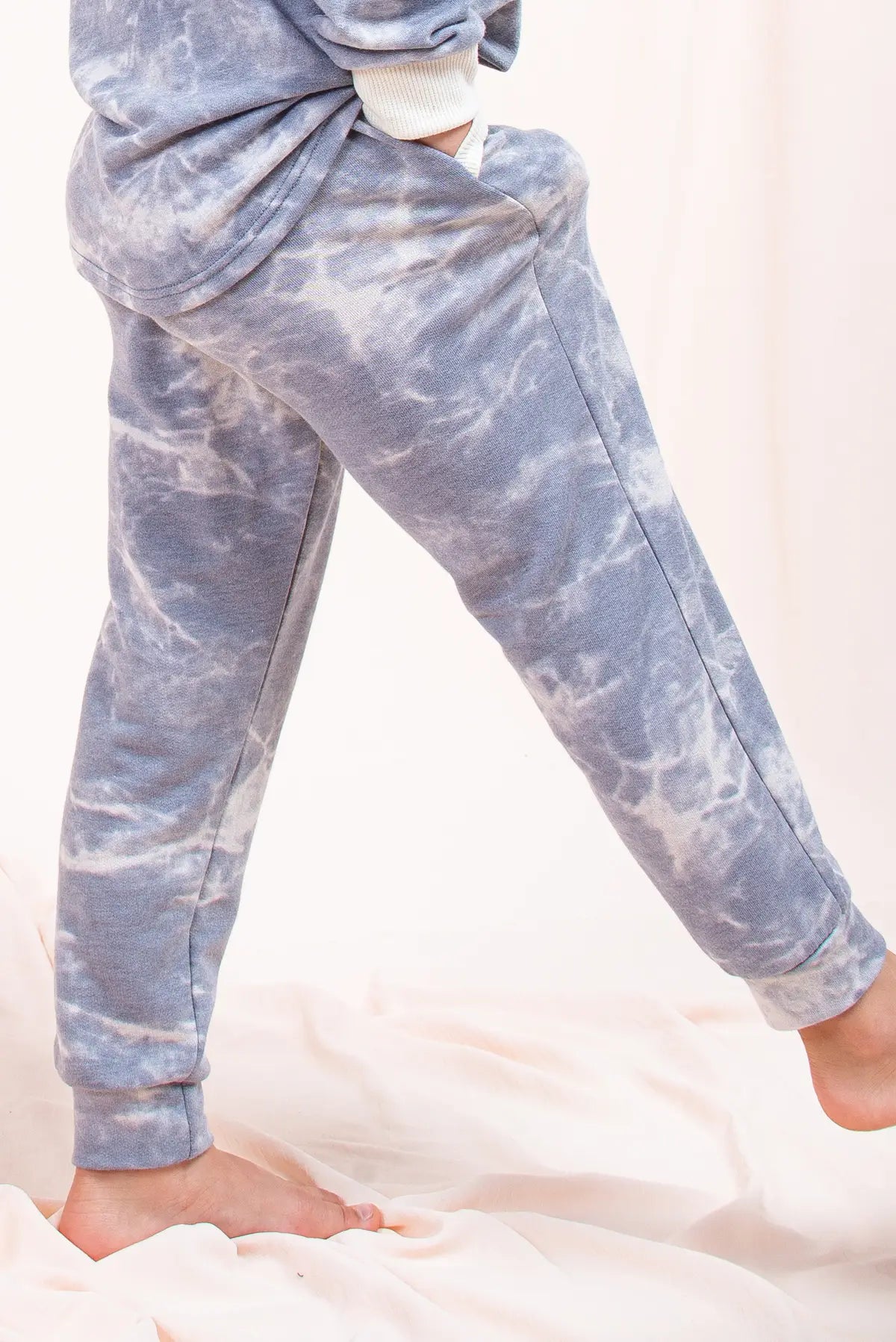 These blue tie dye joggers are gender neutral joggers made out of french terry cloth.