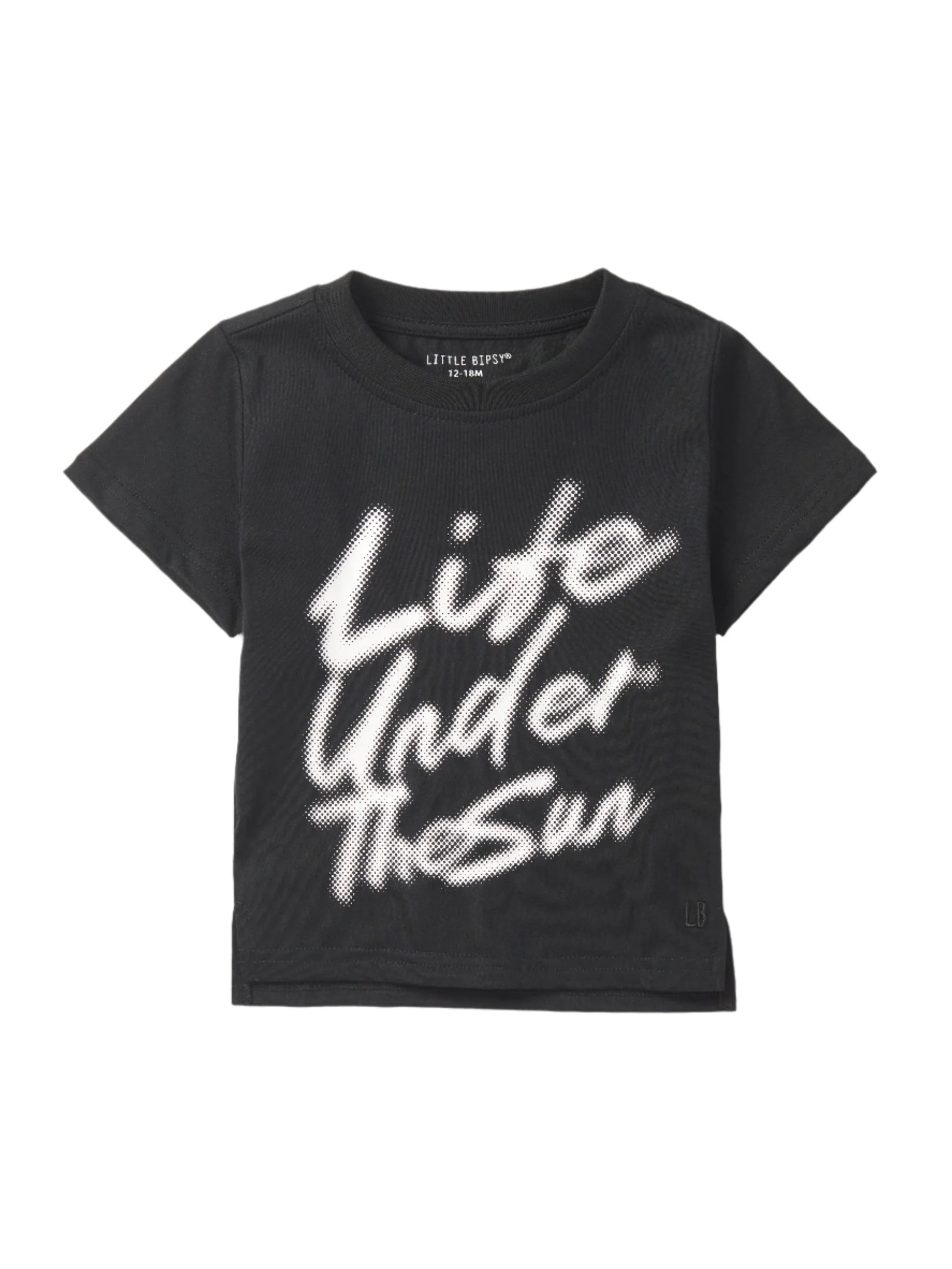 Little Bipsy's "Life Under the Sun" tee inspired by the classic technique of halftoning used in screen printing. In bold Black, this tee features a slight high/low bottom hem and side slits, creating a relaxed, easygoing fit perfect for all-day wear. With its simple yet meaningful “Life Under the Sun” graphic, this tee is a must-have for any child who loves to embrace carefree, sun-filled days with effortless style.