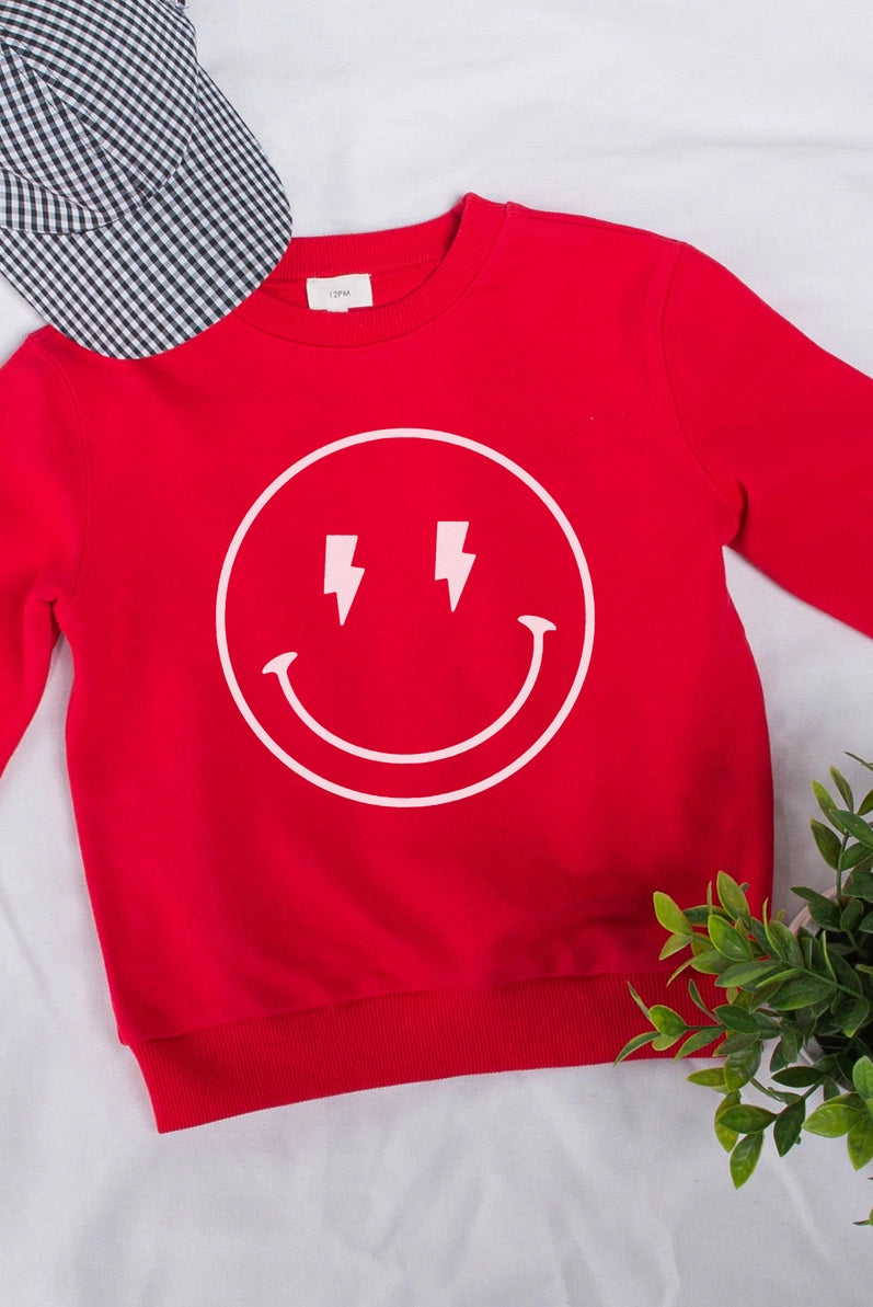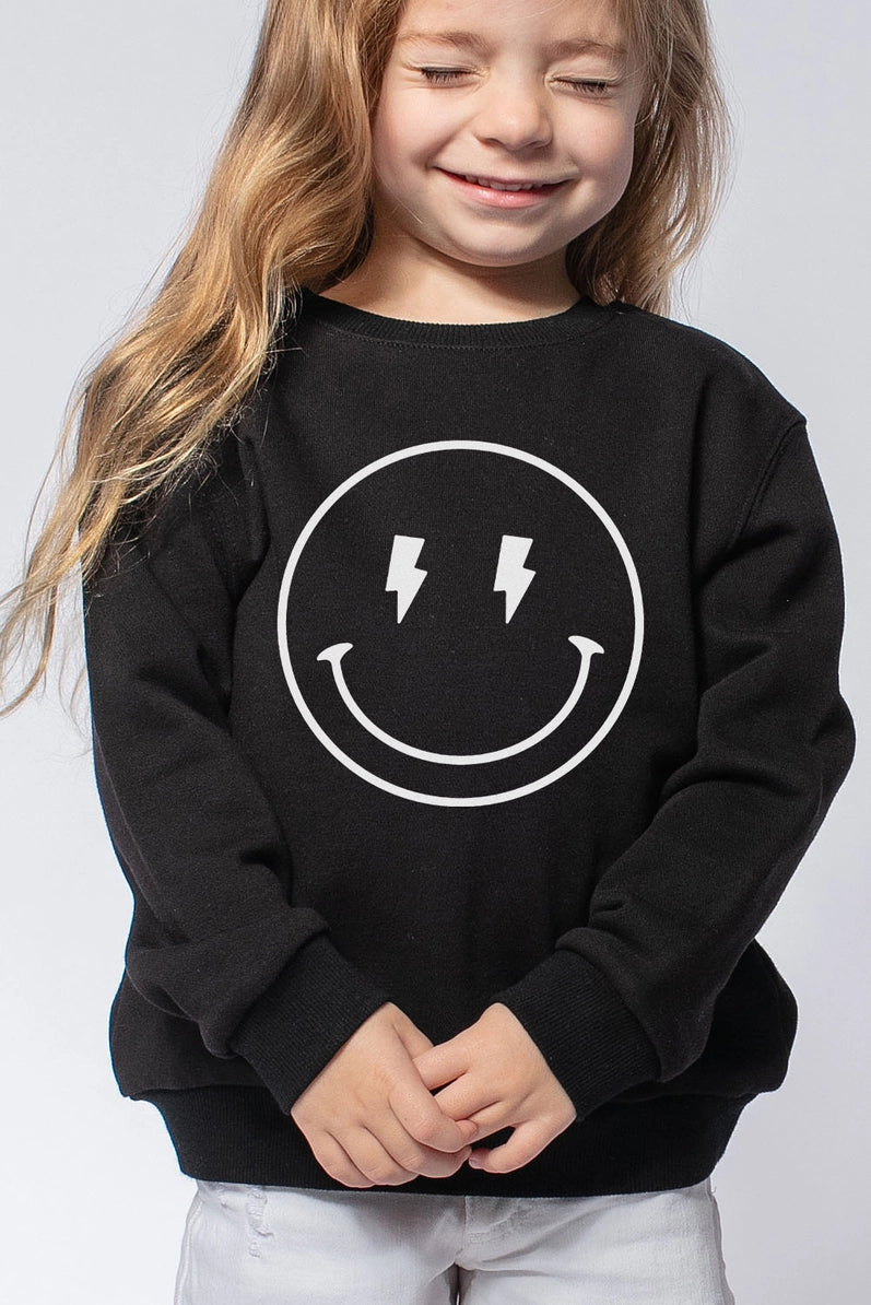 This lightning smile crewneck is great for boys or girls! Model wears a 4t and is wearing the small.