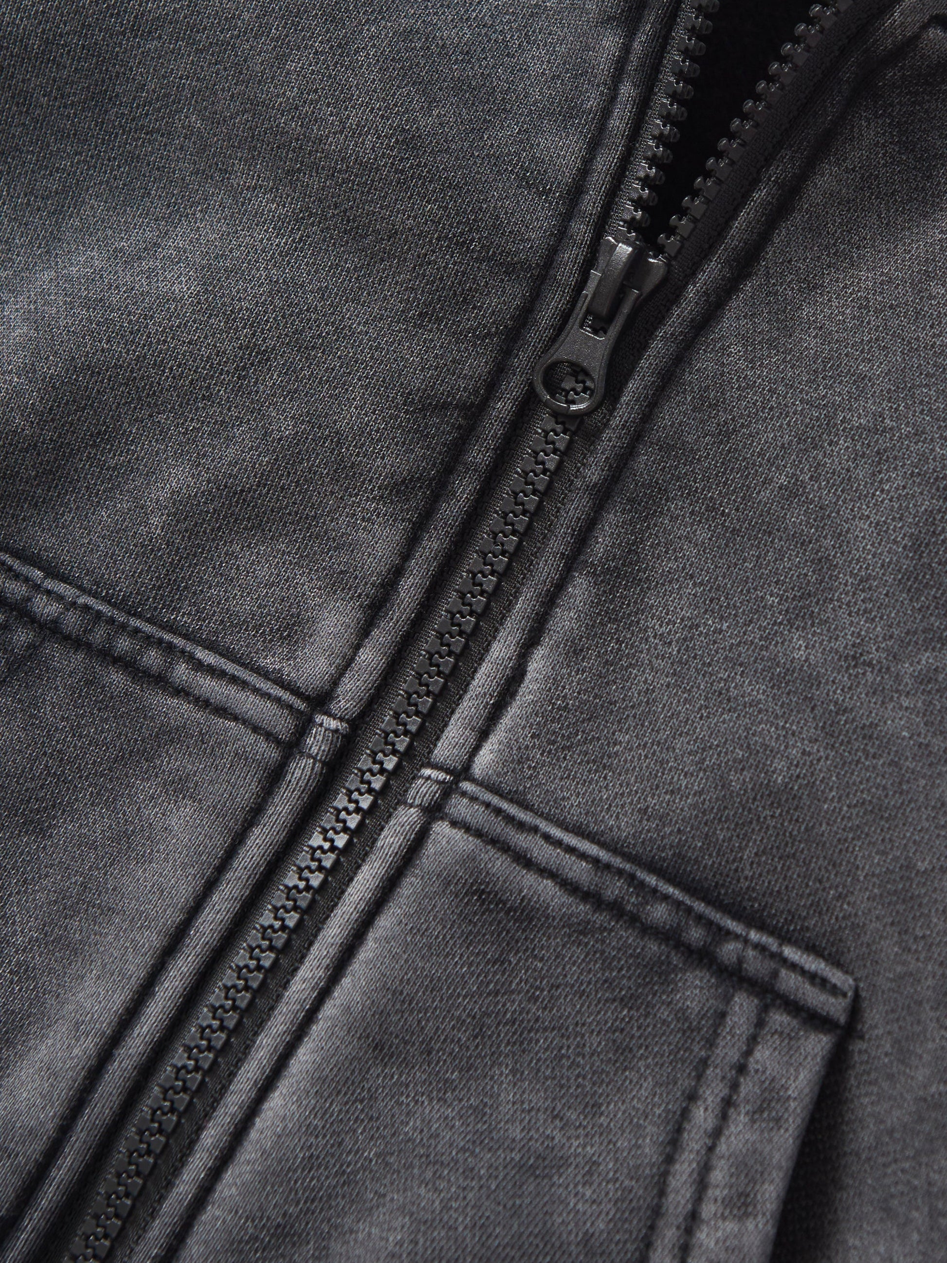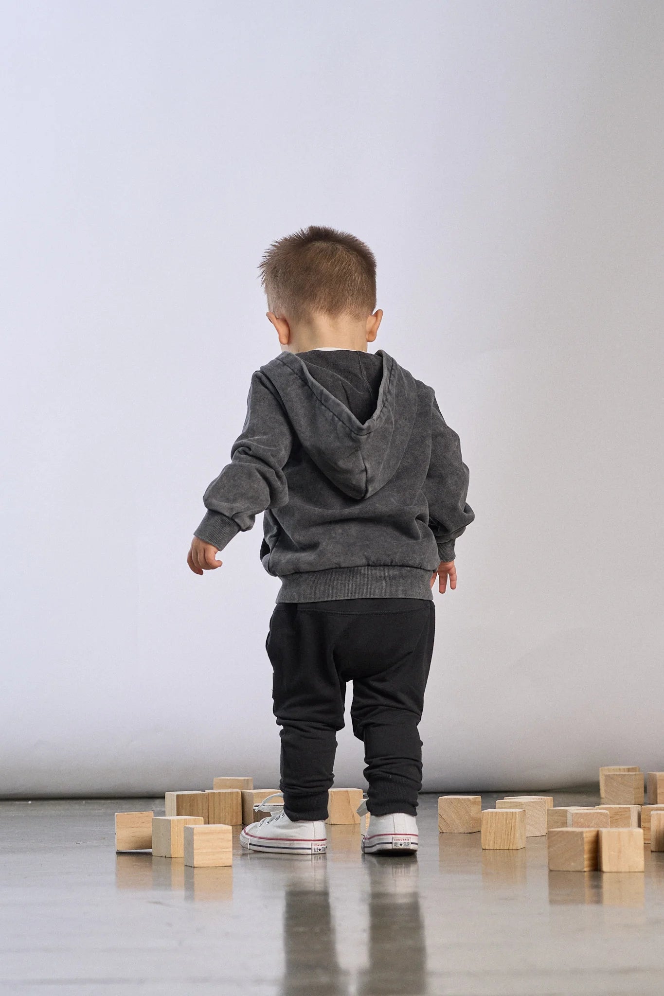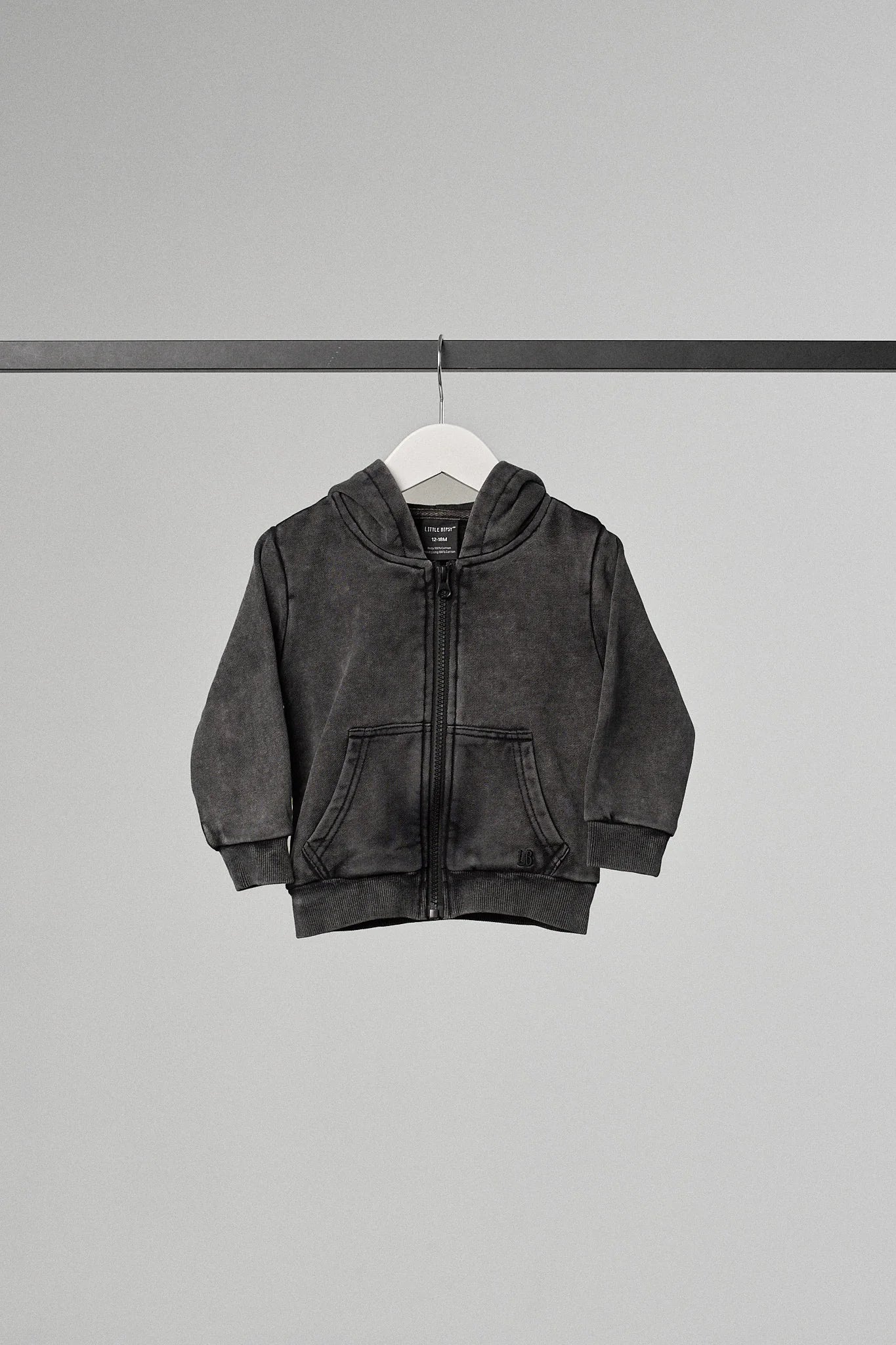 The perfect hoodie for everyone in the family! Whether you're heading to school, playing outside, or just chilling at home, this hoodie has you covered in comfy style. Featuring a full zipper for easy on and off, a cozy hood to keep your head warm, and functional front pockets to stash your stuff or warm up your hands. The stylish black acid wash gives it that effortlessly cool, lived-in vibe everyone loves.