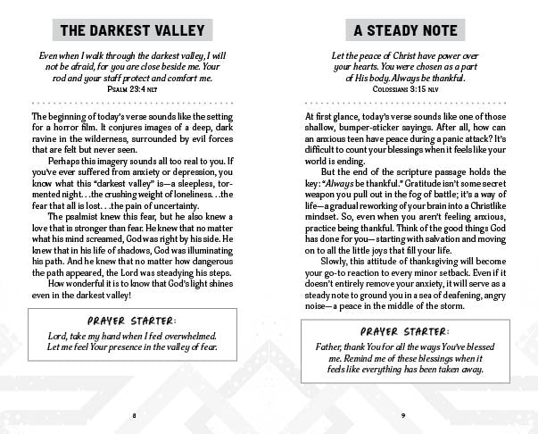 Overwhelmed by anxiety and depression? It's difficult to manage life's burdensome feelings and frustrations when you don't know where in the world to turn. God's Word can help. These 180 devotions and prayers are a welcome start by offering much needed assurance, comfort, encouragement, understanding, love, support, and more truth filled tools to help you manage and overcome your feelings of helplessness and hopelessness. In the pages of Devotions and Prayers for Managing Anxiety and Depression, you'll encounter just what your anxious soul needs. Every wisdom filled devotion offers biblical encouragement and support for life's difficult days. With each turn of the page, you'll discover the truth and tools you need to better manage your feelings of anxiety and depression and will come to trust you're never alone and always loved.