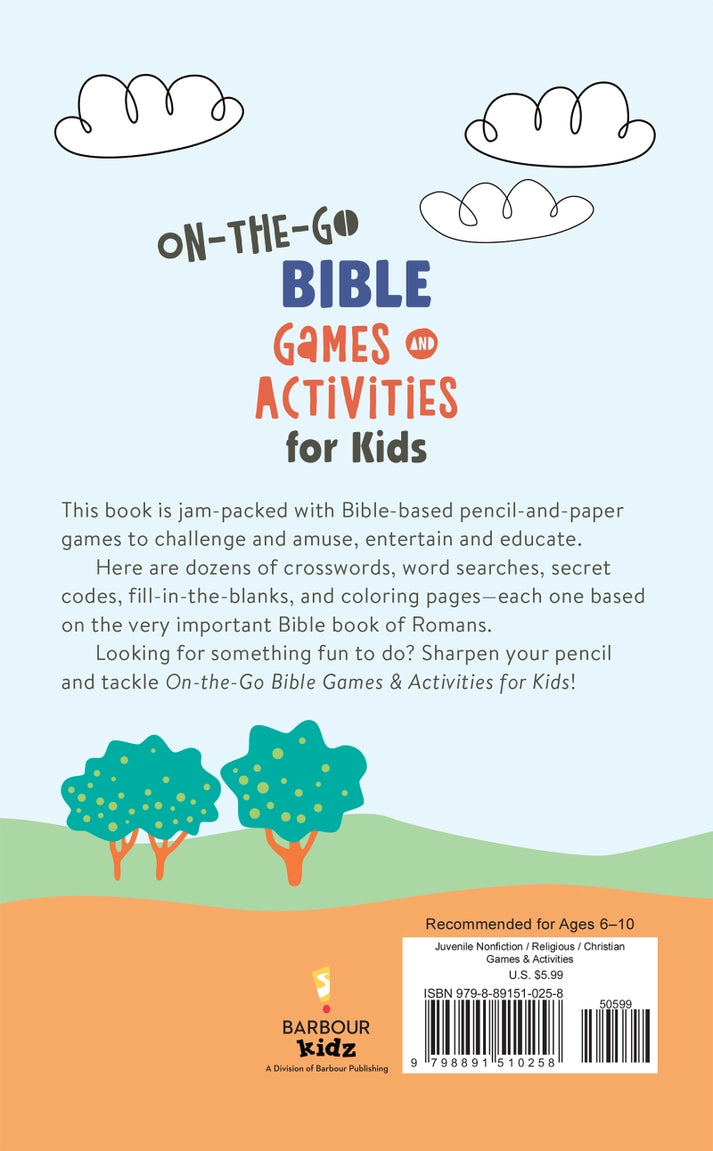 On-the-Go Bible Games & Activities for Kids is perfect for kids ages 6 to 10. This book is jam-packed with Bible-based pencil-and-paper games to challenge and amuse, entertain and educate. With dozens of crosswords, word searches, secret codes, fill-in-the-blanks, and coloring pages, each one based on the very important Bible book of Romans. Looking for something fun to do? Sharpen your pencil and tackle On-the-Go Bible Games & Activities for Kids!