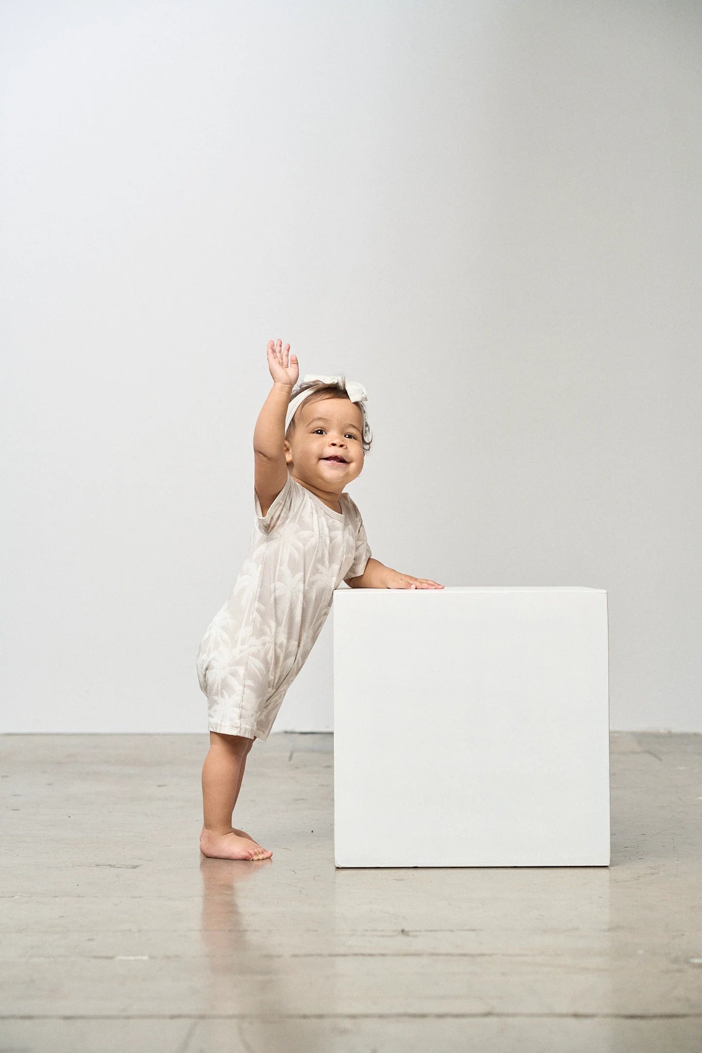 This Little Bipsy romper brings all the tropical energy in a cool frost color with our custom palm print. Soft, stretchy, and made for sunny day adventures, it features a handy front pocket, easy snap leg openings for quick diaper changes.