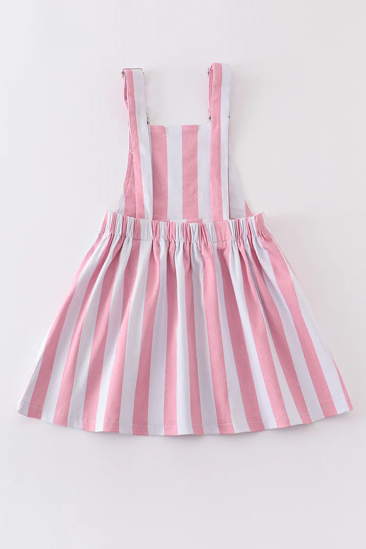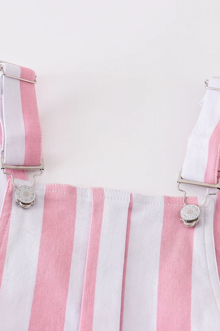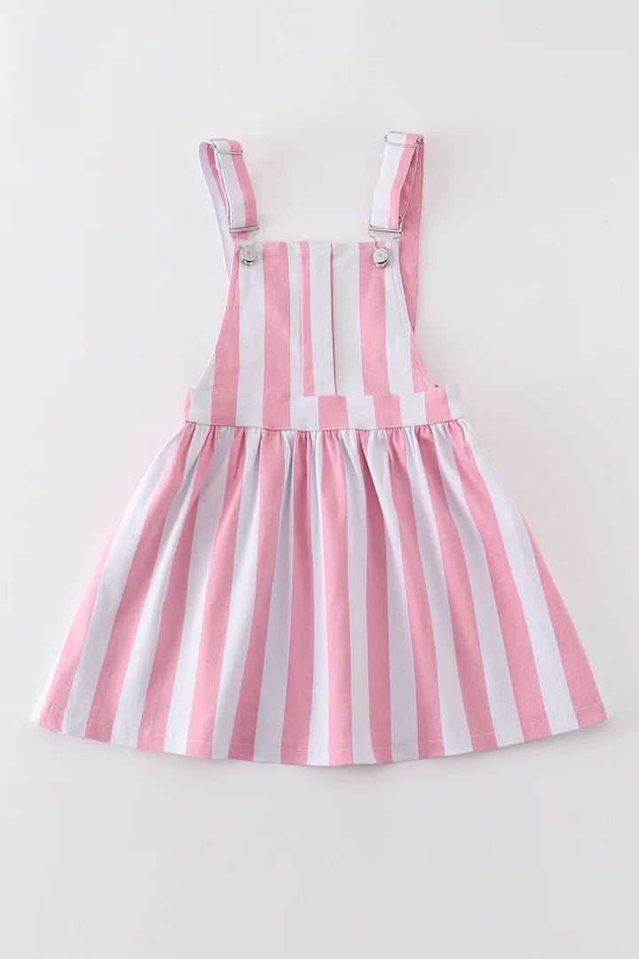 Spruce up your wardrobe with this playful pink stripe denim strap overall dress. Made with durable denim fabric, it's both stylish and practical.