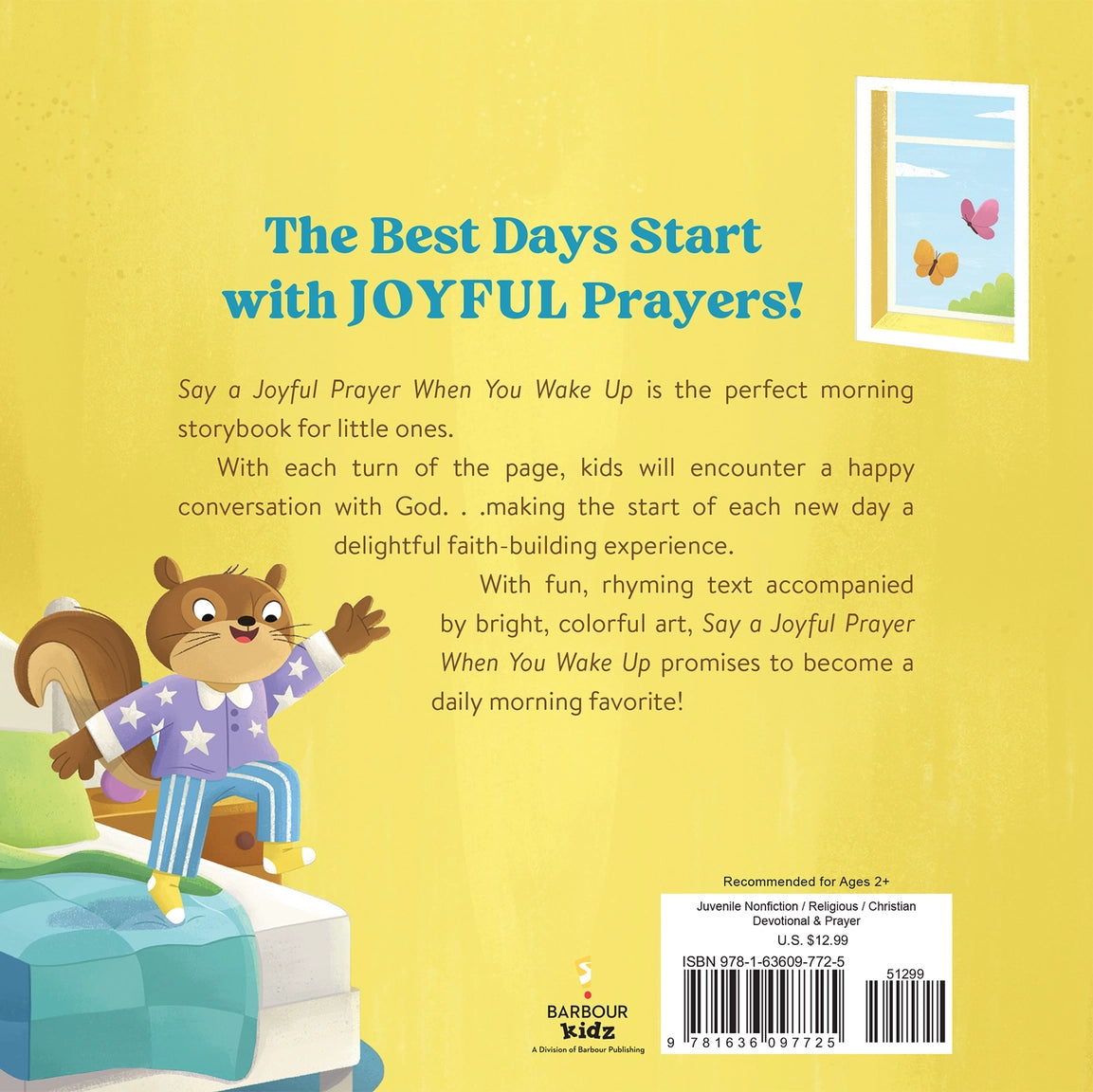 The best days start with JOYFUL prayers! Say a Joyful Prayer When You Wake Up is the perfect morning storybook for little ones. With each turn of the page, your children will encounter a happy conversation with God making the start of each new day a delightful faith-building experience. With fun, rhyming text accompanied by bright, colorful art, Say a Joyful Prayer When You Wake Up promises to become a daily morning favorite! Recommended for ages 2+.